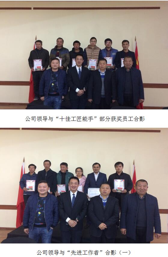 公司按照“年度十佳工匠能手”、“年度先進(jìn)工作者”、“海外工作貢獻(xiàn)獎”的三個類別對員工進(jìn)行表彰,頒發(fā)榮譽證書、頒發(fā)海外工作貢獻(xiàn)獎金牌、頒發(fā)獎金、留影合照,精神鼓勵為主,物質(zhì)獎勵為輔。頒獎合影環(huán)節(jié)將會議推向高潮,引起在座員工內(nèi)心共鳴,不由地為他們鼓掌祝賀,以表達(dá)對他們敬業(yè)愛崗、吃苦耐勞精神的深深敬意!
