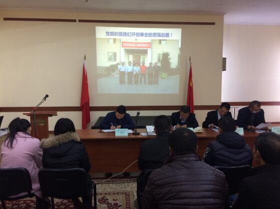 2017年11月20日在吉爾吉斯斯坦首都比什凱克,組織昌通海外黨小組成員、中層干部和入黨積極分子學(xué)習(xí)了“中國共產(chǎn)黨十九大報告”原文、學(xué)習(xí)“不忘初心 重溫焦裕祿精神”報道、重溫入黨誓詞等十九精神專題會議。