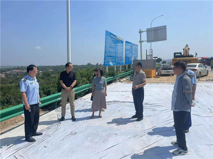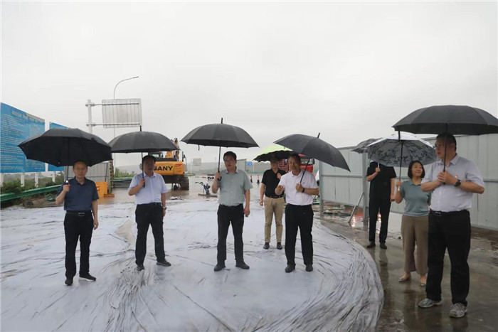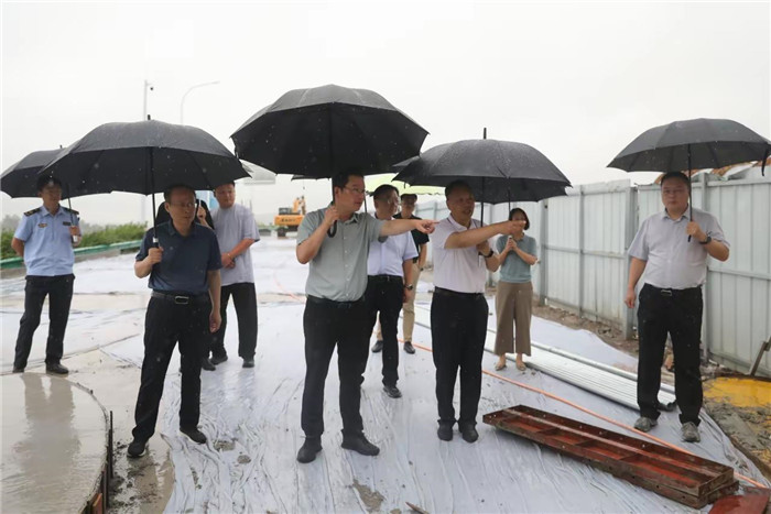 7月8日,副市長秦迎軍, 市政府辦公室副主任張法強,市交通運輸局副局長任江源,市公路中心黨委書記、主任周鵬,總工趙兵一行深入東環(huán)路3號支線項目一線,實地督導檢查防汛安全和道路保通保暢工作,認真聽取現(xiàn)場負責同志的情況匯報,詳細了解雨水天氣道路防汛安全、應急保通及各項安全措施落實等情況,并就做好防汛備汛及安全保通等工作提出具體要求。昌通路橋總經(jīng)理趙鑫,副總經(jīng)理孫博陪同。隨后,趙總、孫總至南山大道引線項目現(xiàn)場,實地查看雨水天氣道路通行及邊溝排水情況。