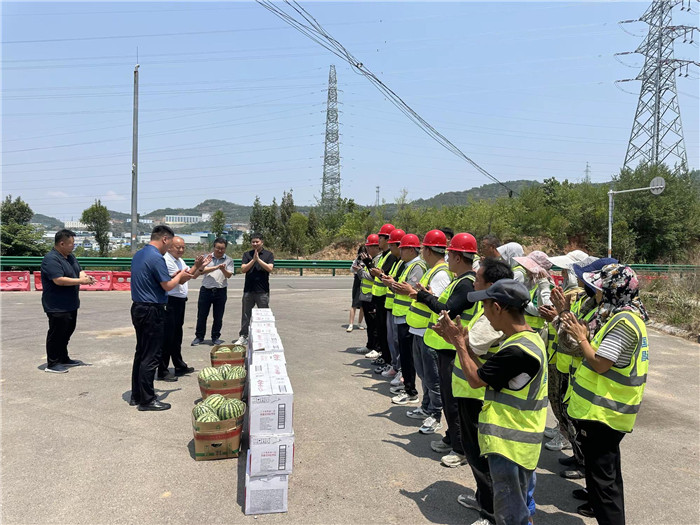 7月2日,路橋集團黨委副書記、總經(jīng)理諶建鋒、總經(jīng)理助理李磊一行至昌通路橋310國道日常養(yǎng)護項目二工區(qū)進行夏季一線“送清涼”慰問活動。對一線員工的付出給予肯定,要求夏日炎熱,注意防暑降溫,保障安全。