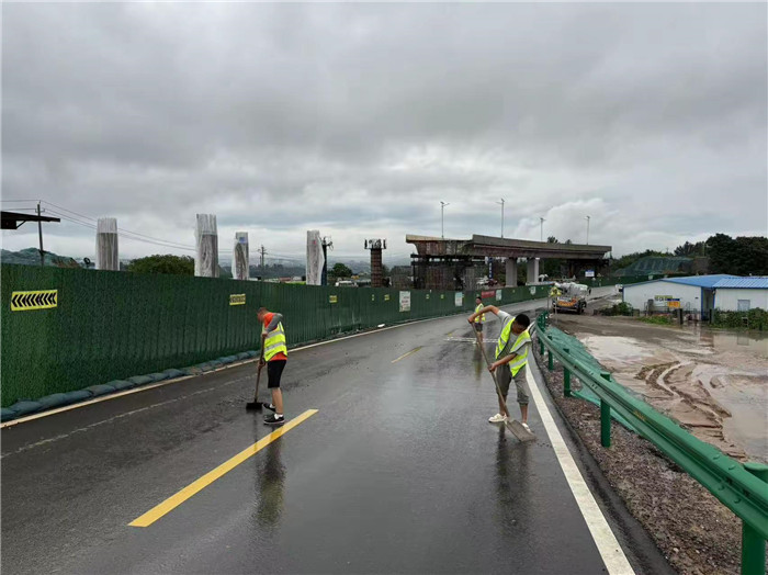 施工現(xiàn)場安全巡查;便道雨后沖洗路面浮泥、清除雜物,防止行車安全隱患。