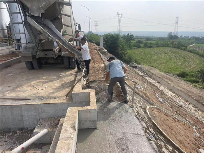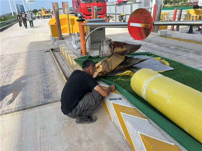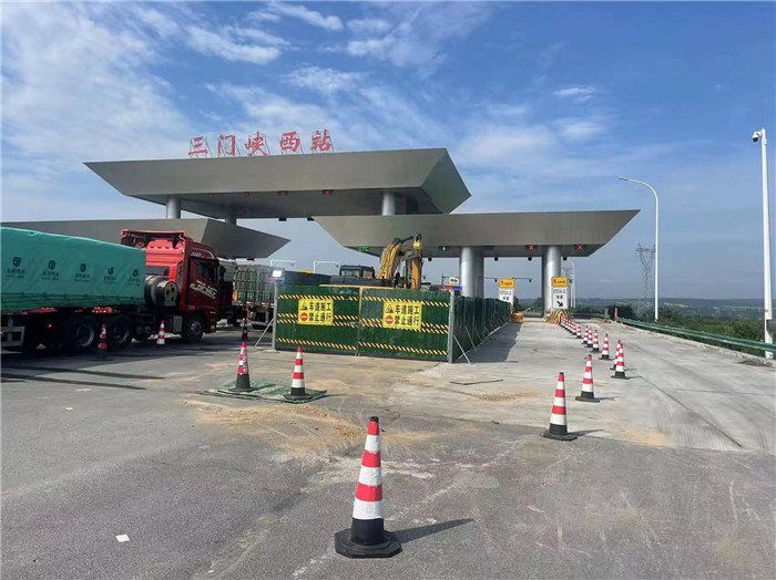 三門峽西收費站防撞島、收費道、路肩澆筑混凝土